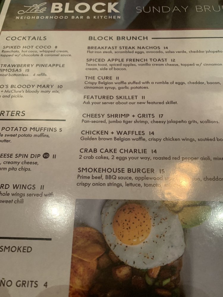 Pan seared shrimp, cheddar jalapeno grits, scallions, applewood smoked pieces (optional)